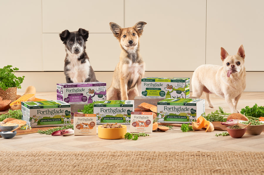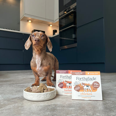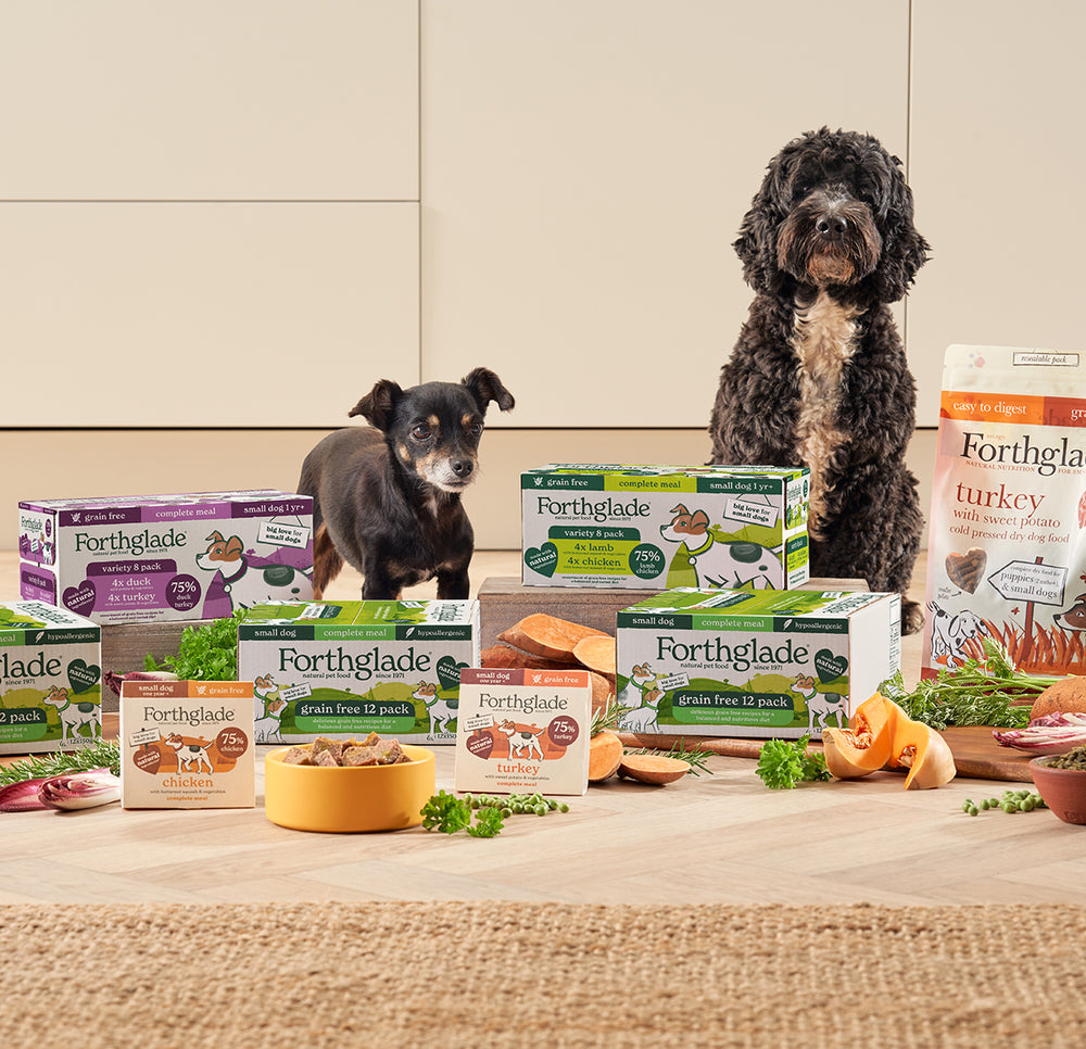 Forthglade Promise, our small dog wet and dry recipes are free from grain, fillers, artificial colours, flavours and preservatives.
