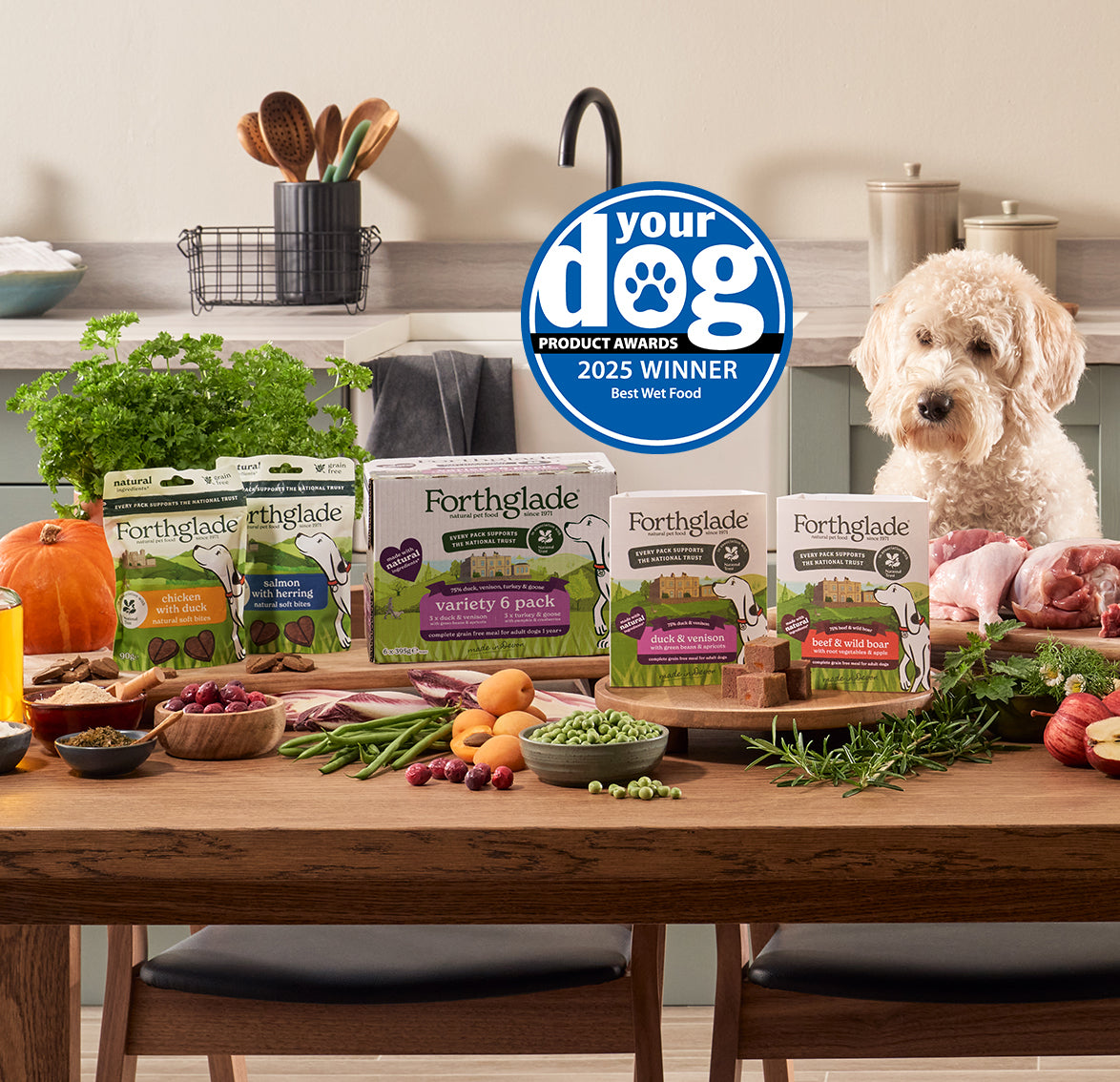 Our National Trust gourmet co-branded range of wet dog food is award winning! Across all our grain free recipes, we've won Your Dogs 'Best Wet Dog Food' for 5 years in a row and we are top rated on All About Dog Food too.