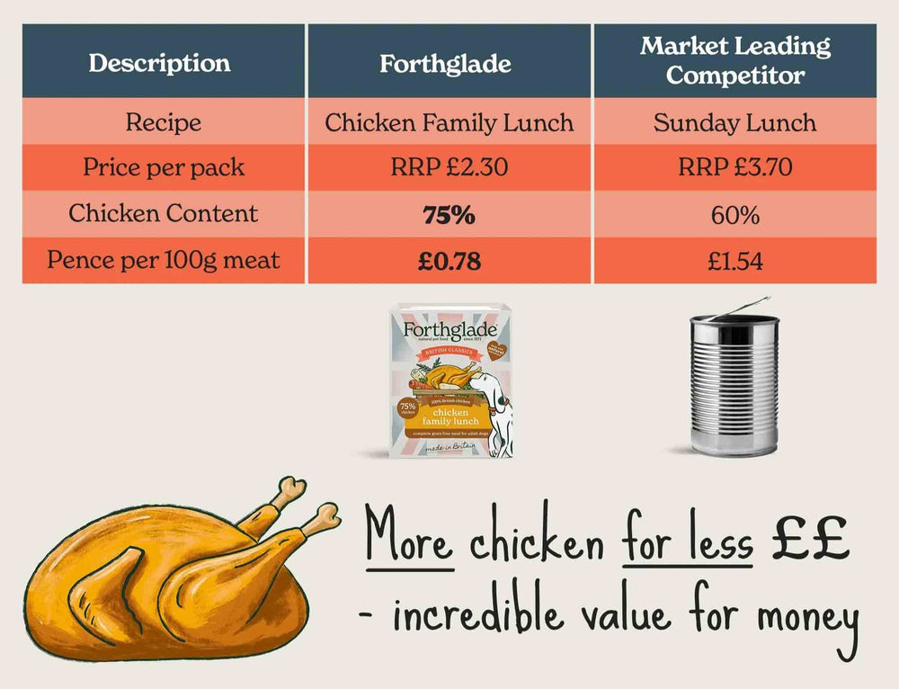 So, If you're wondering if our British Classics range is good value for money, then look no further! We've benchmarked our Chicken Family Lunch recipe against a market leading competitor so you can see for yourself exactly how we stack up.